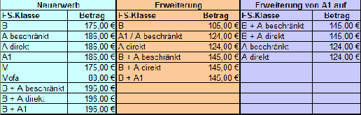 Aus der folgenden Übersichtstabelle können Sie derzeitig gelten Entgelte ersehen: